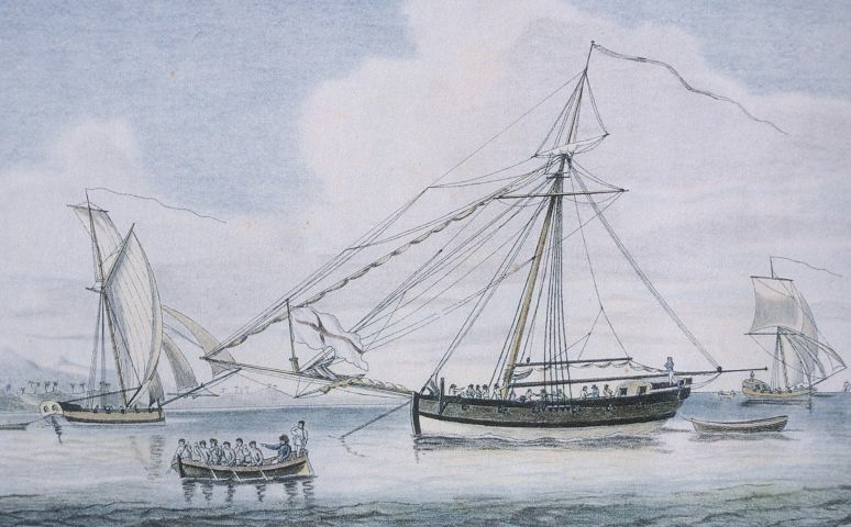 „Gdy spostrzegł, że nasze slupy go ścigają, spuścił flagę św. Jerzego i podniósł czarną flagę z trupią główką, co jest u nich sygnałem, by przerażać – oznacza on, że nie biorą i nie dają pardonu”.